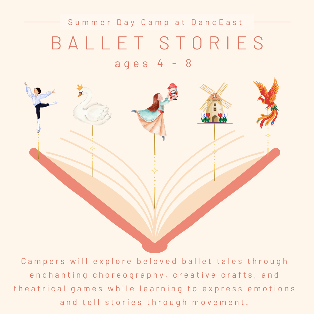 Each day, we'll bring different stories to life through ballet choreography, character-inspired crafts, and theatrical games. From dancing as swans and sugar plum fairies to inventing our own adventures, campers will learn ballet technique while discovering how to express emotions and tell stories through graceful movement.