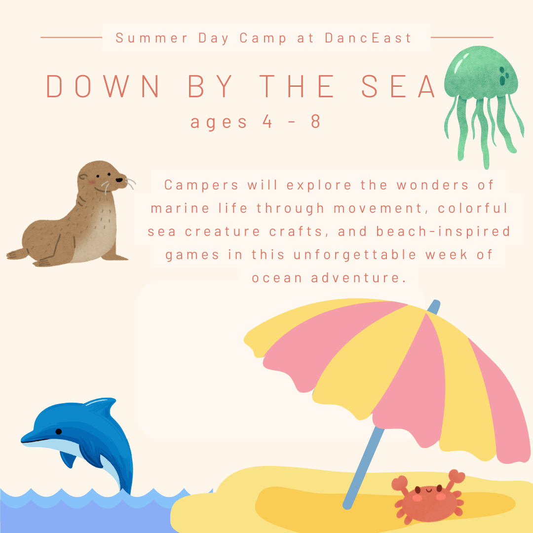 Each day brings new adventures as we dance like dolphins, create colorful sea creature crafts, and play beach-inspired games. From learning ocean-themed choreography to making nautical artwork and ocean treasures, campers will discover the magic of marine life while building confidence, creativity, and new friendships.